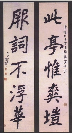事情最早引起质疑的是今2010年年初在台北历史博物馆举行的《张大千的老师——曾熙、李瑞清书画特展》的一件展品。这幅作品是李瑞清为张大千集瘗鹤铭书写的五言联,联曰:“此亭惟爽塏,厥词不浮华。季蝯仁弟索集鹤寿字本字,丁巳四月,清道人。”(《张大千的老师——曾熙、李瑞清书画特展》,台北历史博物馆2011年4月)此联由张大千题籤,具有无可怀疑的真实性。这副五言联曾迷惑了研究张大千多年的傅申先生,他在《曾熙、李瑞清与门生张大千》(同前)一文中他专列一节“大千拜曾、李二师的时间”,进行多方辨证,但最终囿于孤证,只能遗憾放弃“提早大千拜李师的年代到一九一七年”的推断。